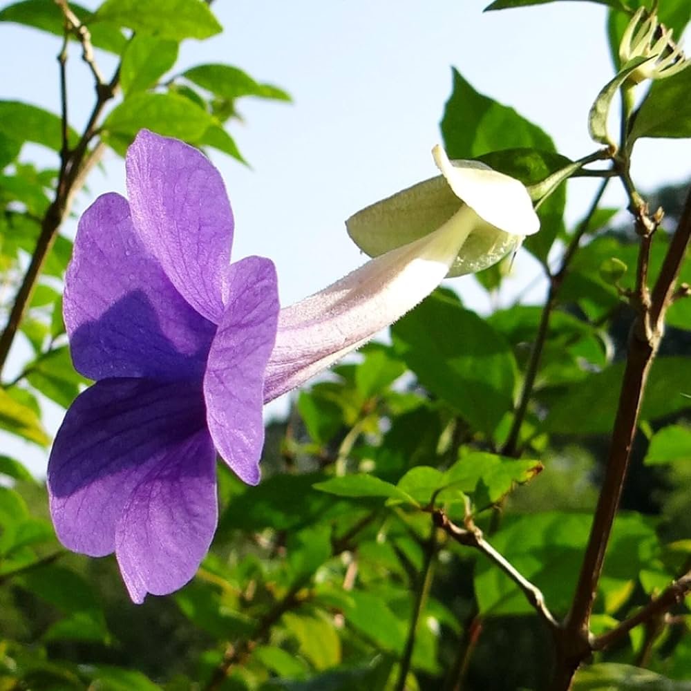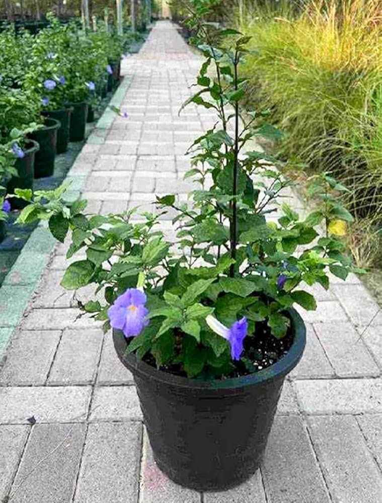 Growing Thunbergia erecta (often called King’s Mantle) in a pot is quite doable and rewarding—it produces beautiful deep purple flowers with a yellow throat 🌸.