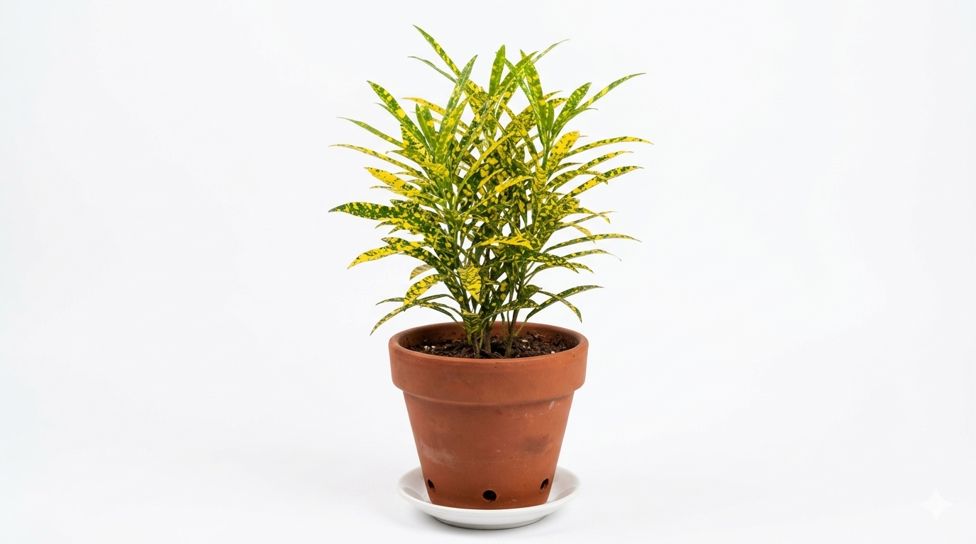 Chironji Croton (Croton plant) indoors in a pot can be very rewarding—its colorful leaves brighten up any space 🌿.