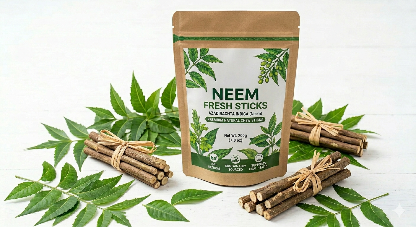 Neem sticks come from the tree Neem tree and have been used for centuries in traditional oral care, especially in India. They’re often called “datun.”
