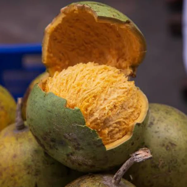 Ripe bael fruit (also called wood apple or बेल) has a sweet, aromatic pulp that’s very versatile.